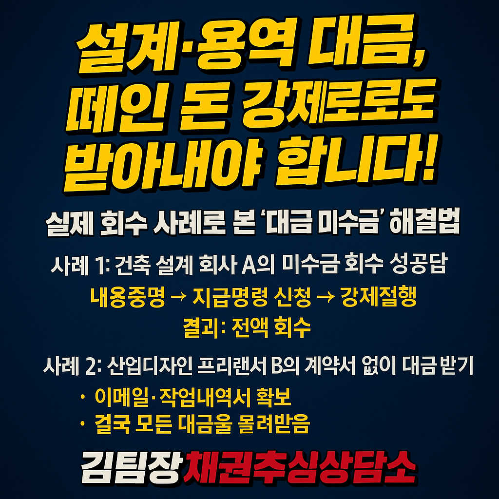 설계·용역 대금, 떼인 돈 강제로라도 받아내야 합니다 – 김팀장채권추심상담소