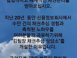 근면-성실하게 일하는 대다수의 일반 국민들 중에 사기꾼한테 몇번 당하면 더 나쁜 사기꾼으로 변모하는것을 많이 봤습니다. 그러므로 이러한 악순환은 반듯이 끊어야 한다고 생각합니다. 금일 채무자 강제집행을 위해 법진행을 했다고 말씀드렸습니다. 채무자는 5개월 가까이 너무 힘들어서 조금만 더 기다려 달라는 말만 반복하고 추심담당자를 열외시키고 채권자에게 계속 매달리는 상황이었습니다. 우리 채권자는 맘이 약한 분이라서 채무자 말만 믿고 차일피일 미루게 된 사건입니다. 하지만, 김팀장이 채무자 재산을 찾아내고 채권자에게 이 분은 절대 돈을 갚을 자가 아니란걸 자료를 가지고 말씀드리니 채권자는 그제서야 김팀장이 시키는데로 다 하자고 한 상황입니다.