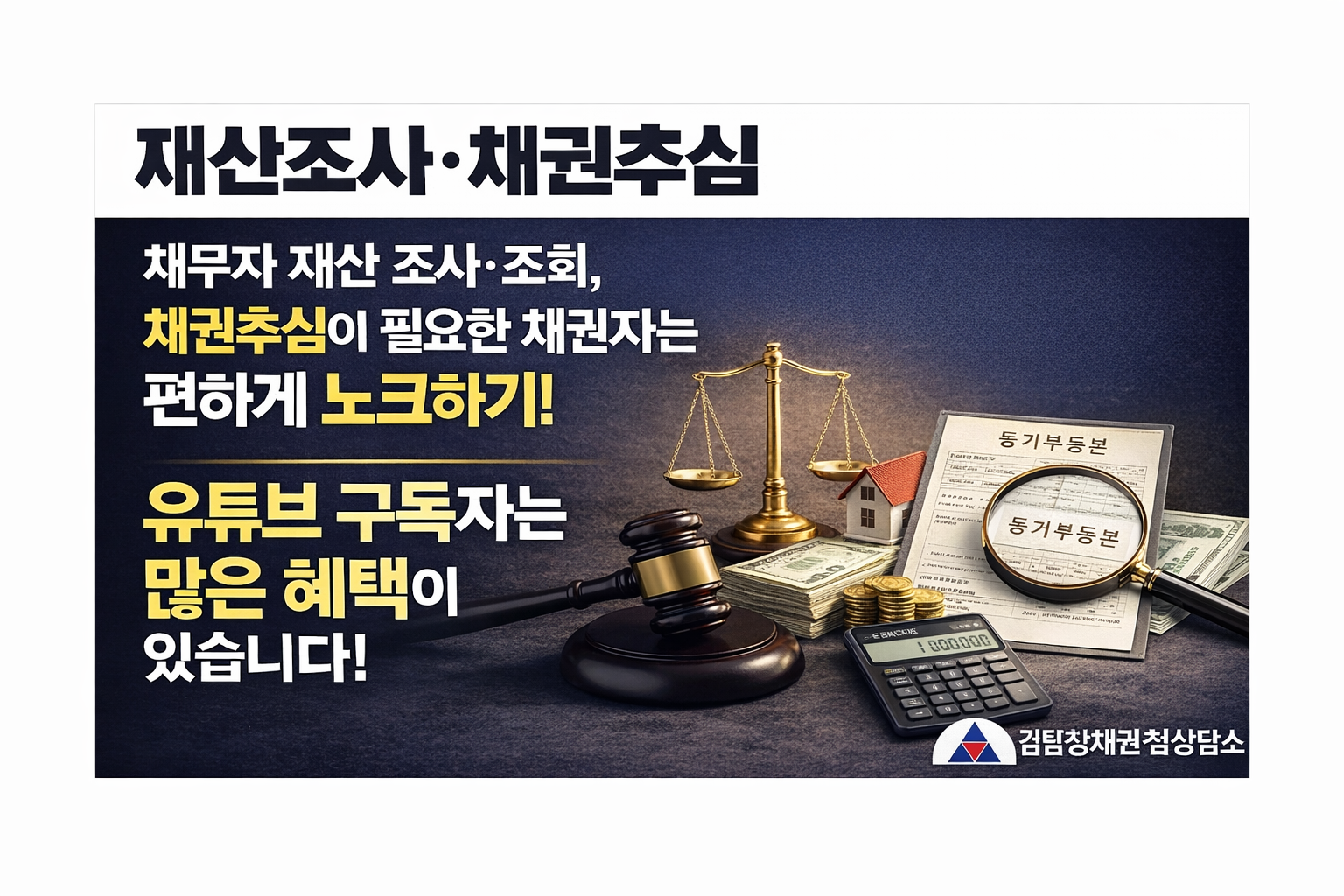 채무자 재산 조사·조회, 채권추심이 필요한 채권자는 편하게 노크하기! 유튜브 구독자는 많은 혜택이 있습니다.