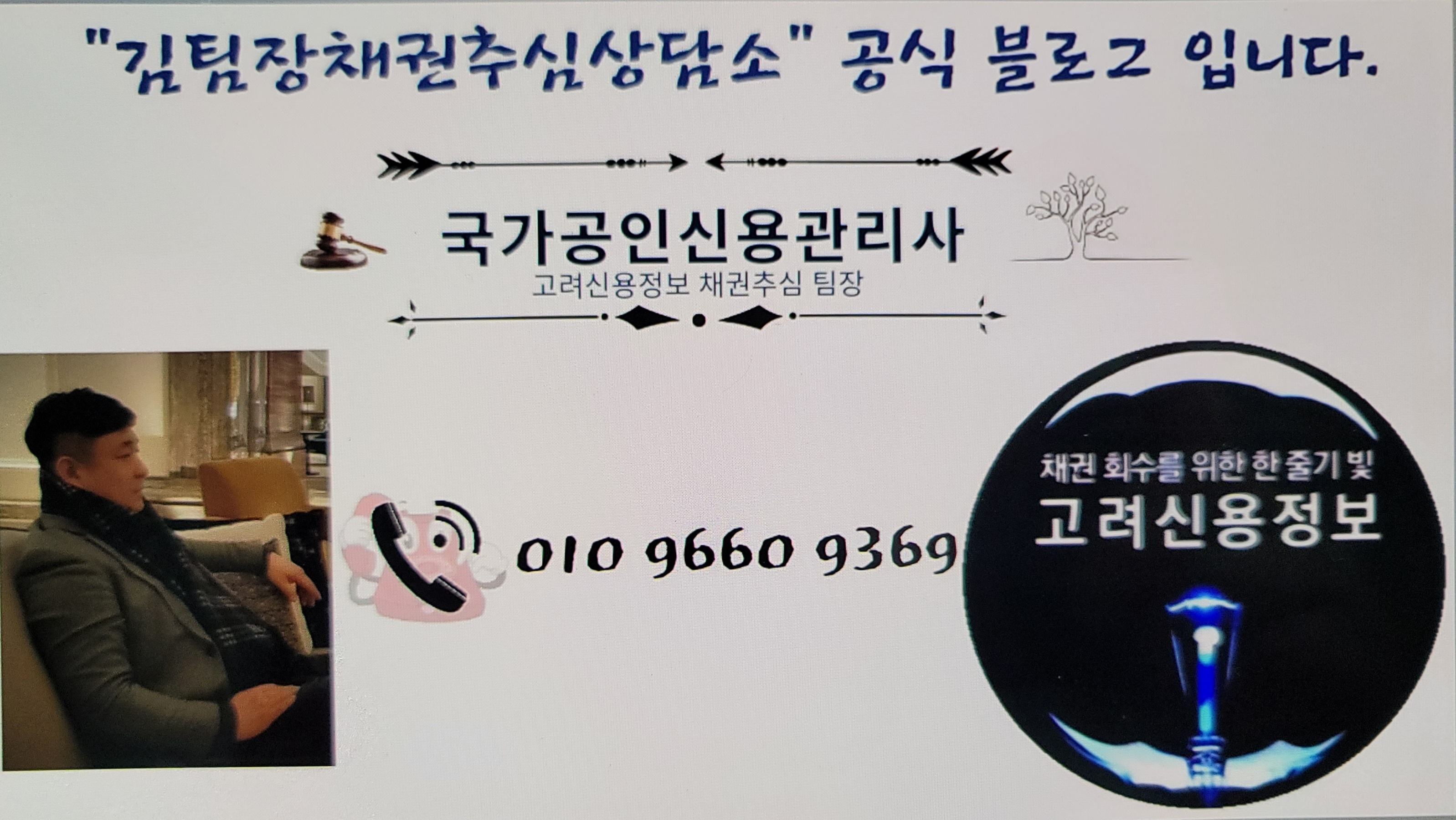 '김팀장 채권추심 상담소' 유튜브와 블로그를 운영하는 국가공인신용관리사, 김팀장입니다. 채권추심에서 가장 중요한 것은 '떼인돈받아드립니다' 입니다. 어떻게하면 가장 효율적으로 회수할지 채권추심 현장에서 20년 가까이 일하며 많은 경험을 했습니다. 제가 유튜브와 블로그를 하는 이유는 좋은 채권자의 선택권과 알 권리를 위해 하고 있습니다. 왜냐하면 최소한의 PR이 없으면 채권자는 추심담당자를 선택할 수 없기 때문입니다.