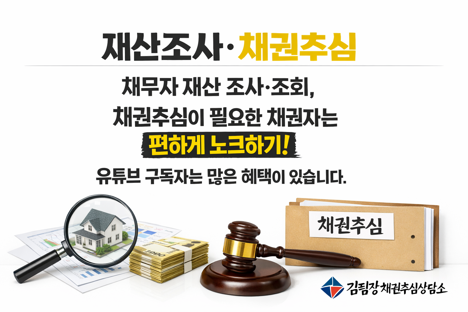 채무자 재산 조사·조회, 채권추심이 필요한 채권자는 편하게 노크하기! 유튜브 구독자는 많은 혜택이 있습니다.
