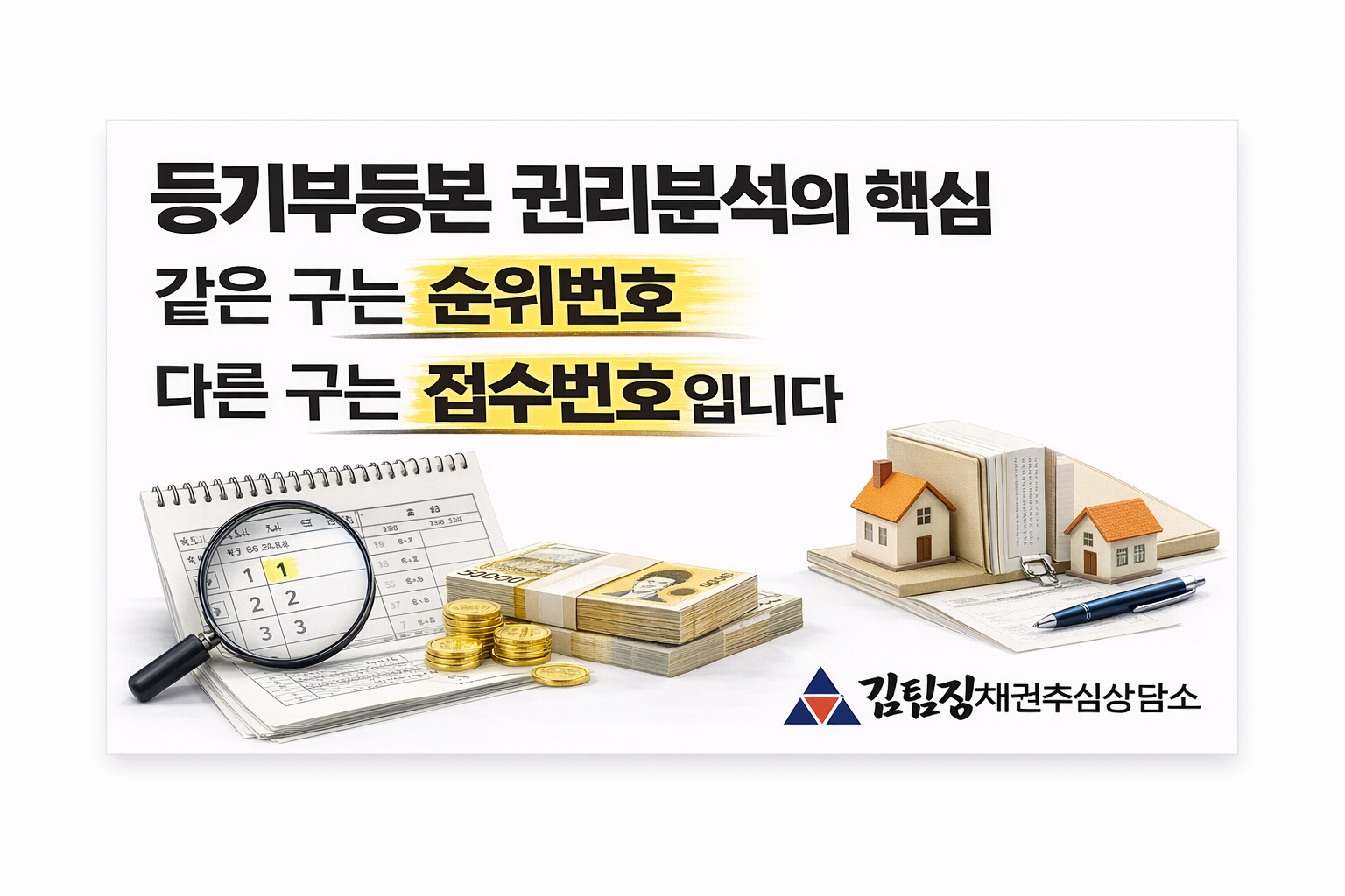 부동산 사건을 보다 보면 채권자들이 아주 자주 하는 착각이 하나 있습니다. 등기부등본 왼쪽에 적힌 순위번호만 보고 권리의 선후를 단정하는 것입니다. 갑구 1번이면 무조건 빠르고, 을구 1번이면 또 그 안에서 제일 빠르니 둘 다 1번이면 비슷하겠지 이렇게 생각하는 겁니다. 그런데 실무는 그렇게 움직이지 않습니다. 김팀장이 현장에서 보면 권리분석이 틀어지는 출발점이 바로 여기입니다. 같은 구 안에서는 순위번호를 보면 되지만, 갑구와 을구처럼 서로 다른 구에 적힌 권리의 선후는 접수번호로 따져야 합니다. 이 기본을 놓치면 경매, 배당, 가압류, 근저당 분석이 전부 흔들릴 수 있습니다.