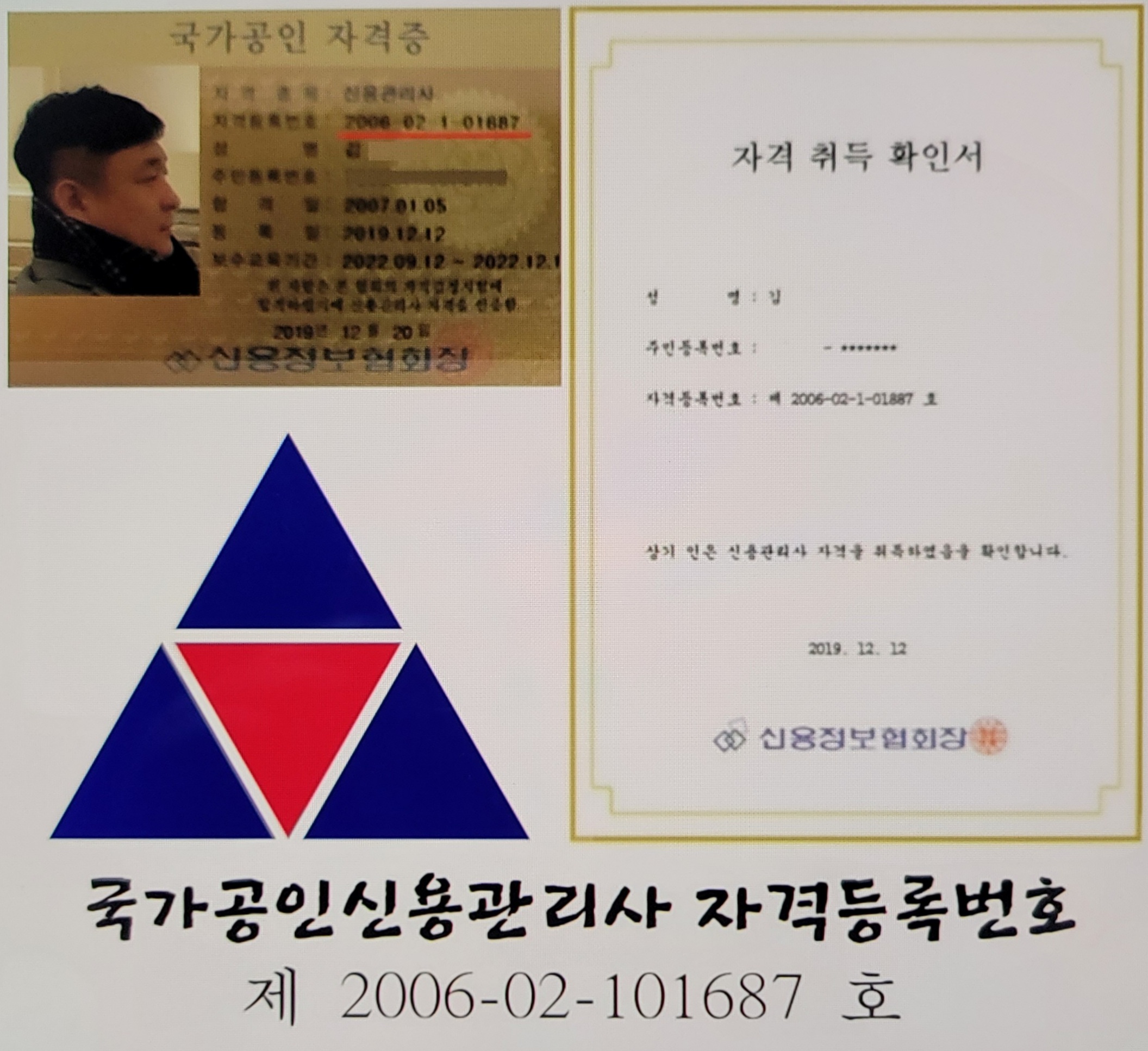 필자는 2006년 국가공인신용관리사 자격증 시험에 합격한 베테랑입니다! 1년에 한번 시험을 보며, 2020년 합격율은 8프로 미만이었습니다. 필자는 현재 신용정보회사의 투명하고 선순환 사회를 위해, "김팀장채권추심상담소"라는 유튜브 채널을 운영하고 있습니다. 제 유튜브 구독자는 상황에 따라, 채무자 조사비를 무료로 하고 있습니다.