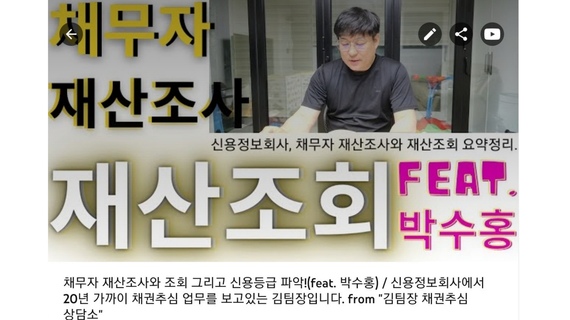 "김팀장채권추심상담소" 유튜브 구독자는 많은 혜택이 있으므로 김팀장에게 노크할 채권자는 꼭! 구독자입니다라고 큰 소리로 말하기 바랍니다. 감사합니다.