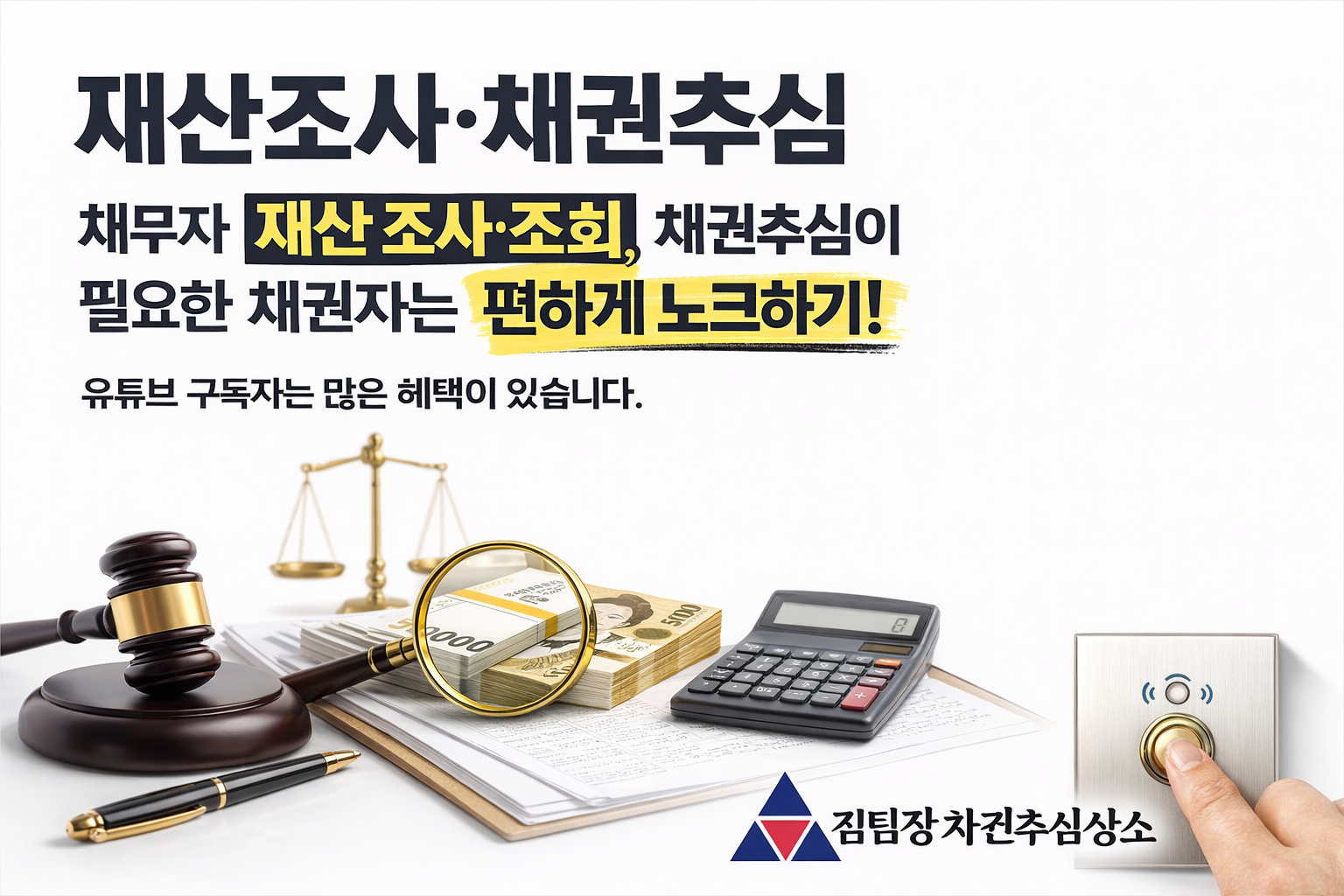 채무자 재산 조사·조회, 채권추심이 필요한 채권자는 편하게 노크하기! 유튜브 구독자는 많은 혜택이 있습니다.