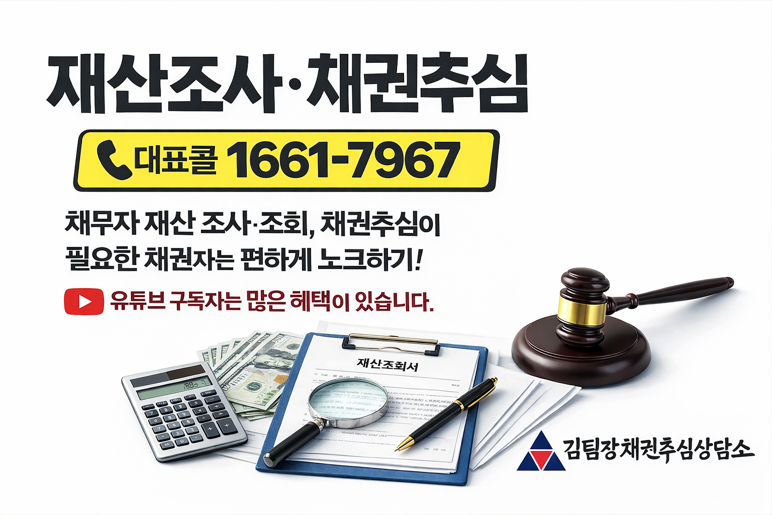 채무자 재산 조사·조회, 채권추심이 필요한 채권자는 편하게 노크하기! 유튜브 구독자는 많은 혜택이 있습니다.
