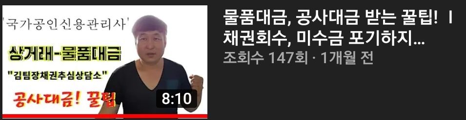 그리고 평상시 이런 채권채무가 없더라도 채권채무는 언제나 발생할 수 있으므로 연륜과 검증된 신용관리사 한 명쯤 알고 있으면 인생이 더 윤택해진다고 봅니다! 이런 이유로 김팀장은 본인의 'PR'을 위해 "김팀장채권추심상담소" 유튜브와 블로그를 운영하고 있습니다. 특히, 제 유튜브 구독자는 채권추심에서 가장 중요한 것 중, 하나인 채무자 조사비 선불을 무료로 하고 있습니다.